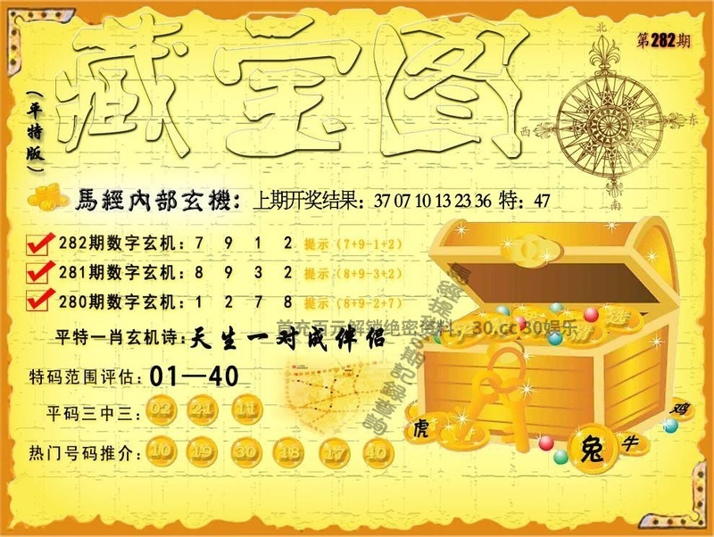 282期:平特藏宝玄机:【天生一对成体侣】 推荐平码:10.19.30.18.17.40 |